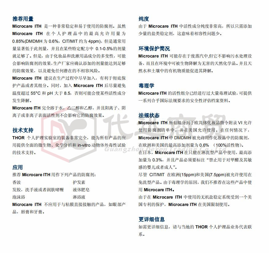 产品名称:THOR英国托尔MICROCARE ITH冲洗型型个人护理品配方防腐剂 高纯度液体防腐剂