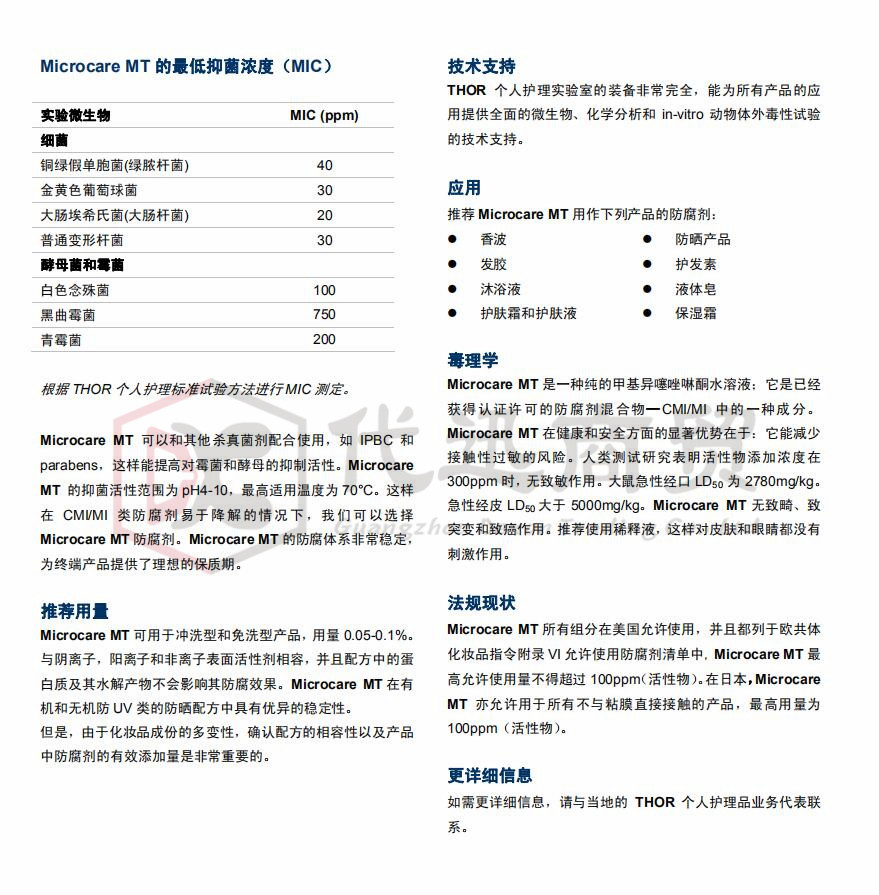产品名称:THOR英国托尔MICROCARE MT个人护理品配方防腐剂 不含甲醛防腐剂