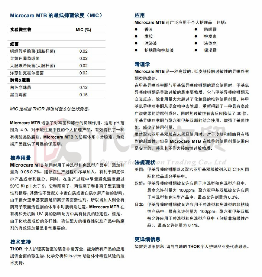产品名称:THOR英国托尔MICROCARE MTB个人护理品配方防腐剂 不含甲醛防腐剂